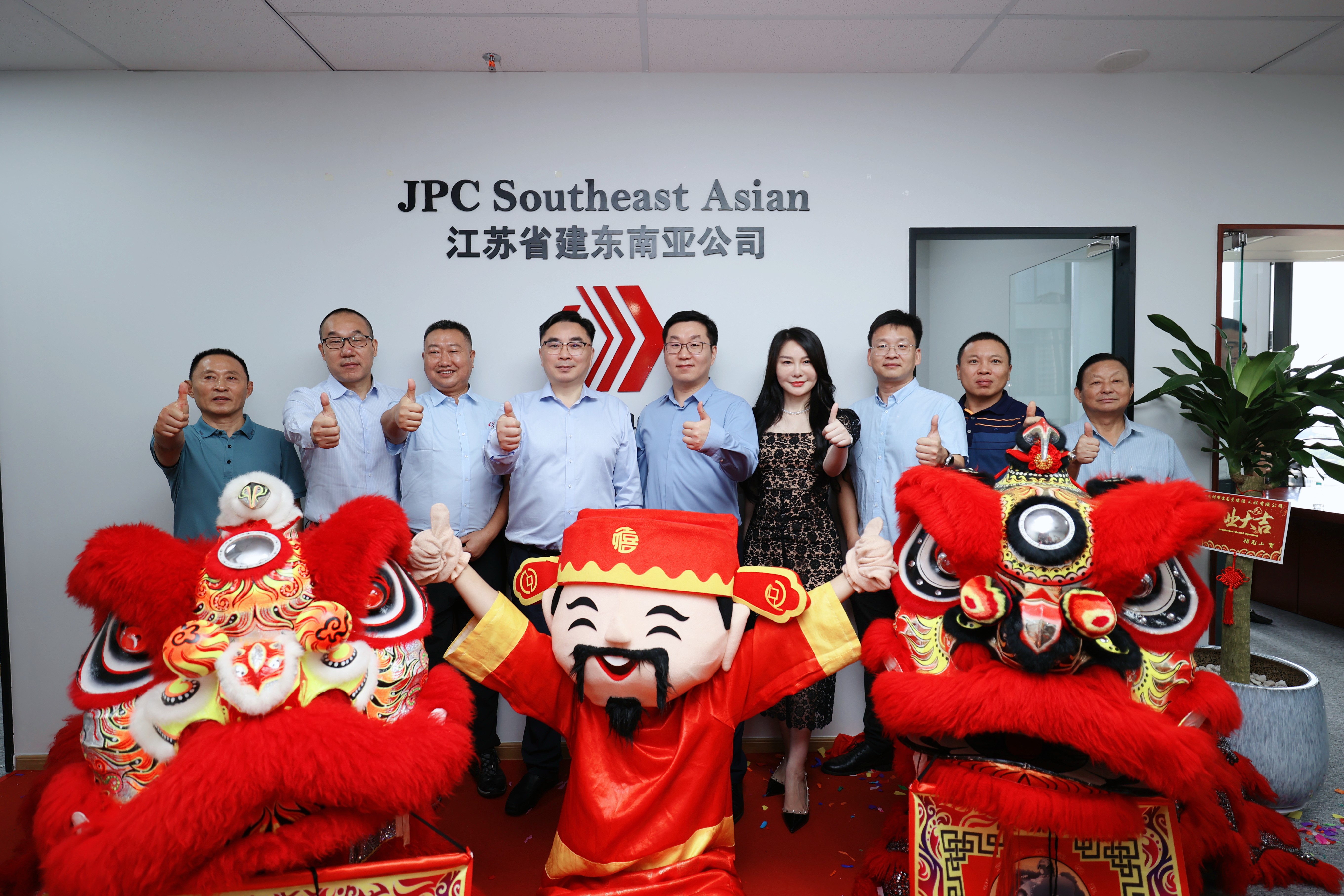 在热烈的掌声中,金红双狮腾跃起舞,蒋宁和出席活动的领导嘉宾共同为东南亚公司总部揭牌,崭新的招牌在狮舞祥瑞中熠熠生辉,标志着集团海外事业发展迈向全新阶段,开启全新征程。