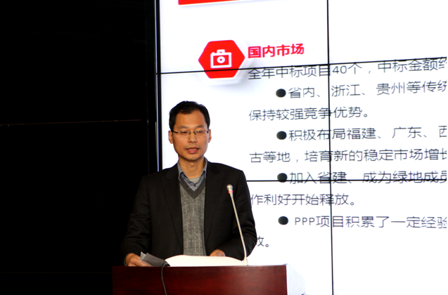陈正华指出,围绕集团2017年工作思路和目标,要突出“绩效考核”和“人才建设”两项重点,着重抓好四个方面工作:一是要继续加快和绿地集团的融合步伐,深刻领会绿地文化核心价值观,使江苏省建和绿地集团部门之间形成无缝对接。二是要继续加大市场开拓力度,积极同绿地集团各事业部、绿地城投集团以及国外知名房企对接,深耕海外三大区域市场,力争在重大基础设施、PPP项目、海外项目上求得更大突破。三是,培植和提升江苏省建的专业优势。围绕绿地集团“大基建”战略,从战略高度找准江苏省建定位,发挥优势,主攻超高层、市政交通工程、海外项目和轨道交通工程,在房地产、幕墙和装饰装修等专业市场有新突破。四是,围绕“四库一平台”,优化集团管理流程,提升管理水平,在防范风险上下功夫,利用好信息化手段,确保项目生产运营情况受控。